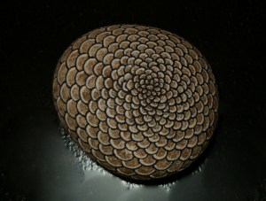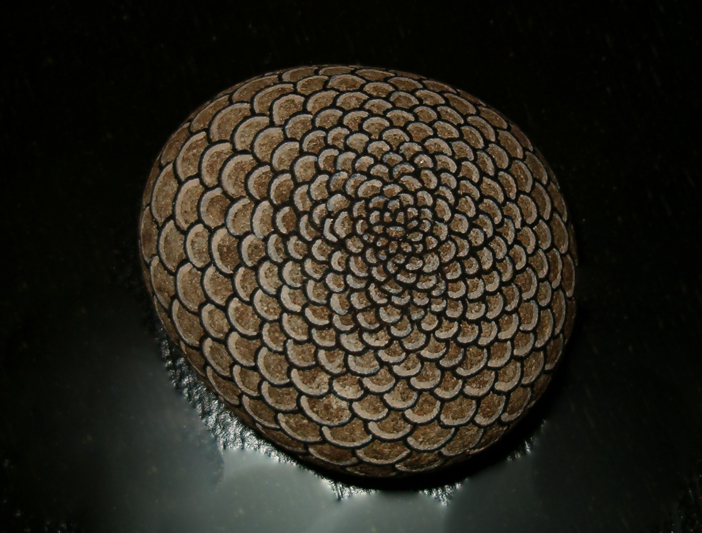 Along the way I painted some “natural” stones. These stones have minimal paint on them. The design is done in permanent ink and then it is highlighted with a paint that complements the natural color of the stone. Most of the color you see is purely natural. This one reminds me of a pinecone.