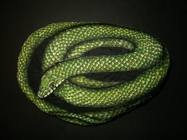 I started painting snakes because I could not paint fur very well. Everyone wanted furry little critters and I got so frustrated because my fur didn’t look very furry. So…