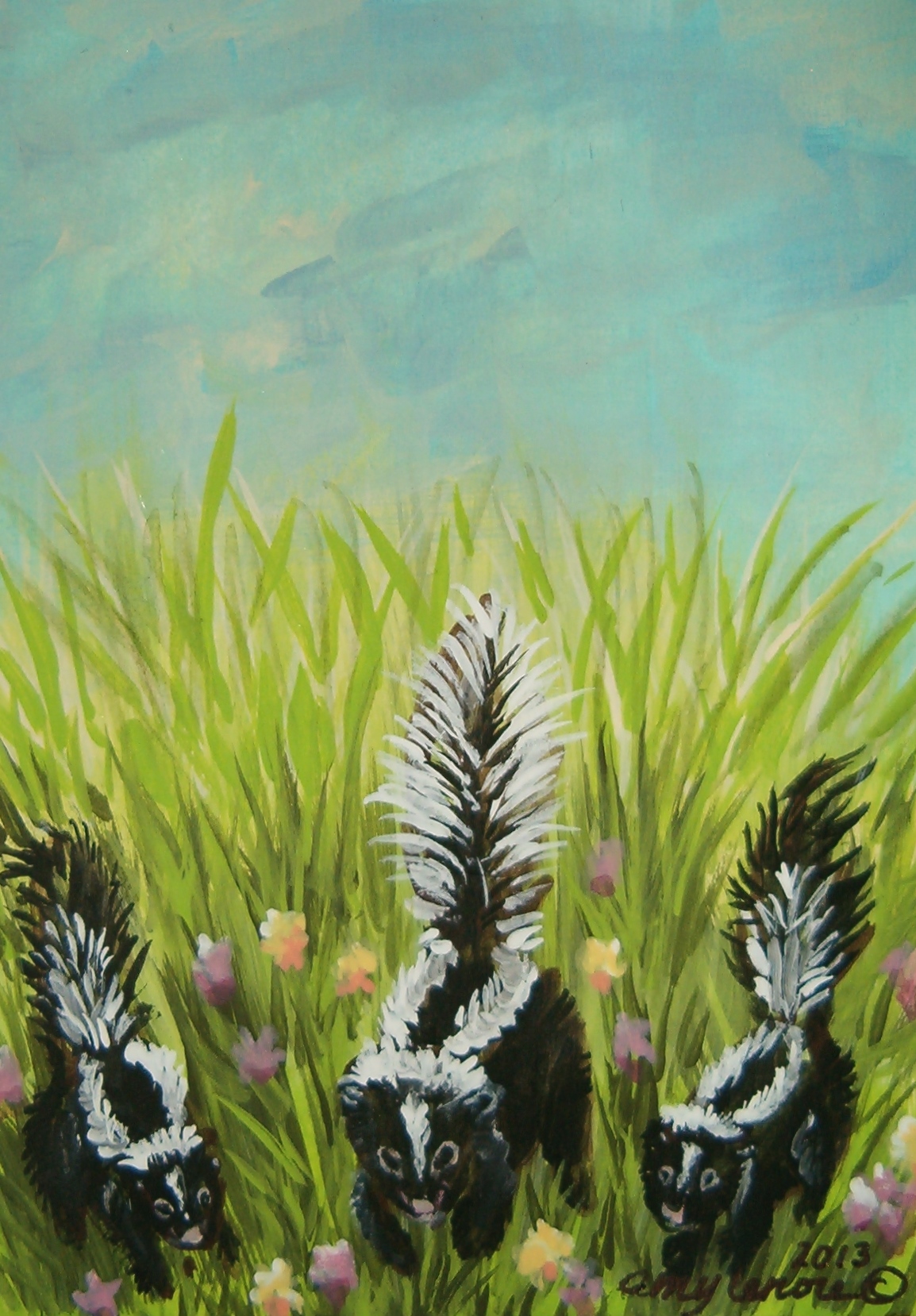 This entry was published on March 14, 2013 at 4:44 am. It’s filed under Uncategorized and tagged flowers, grass, paint, painting a day, playing, seasons, skunk, snow, spring, sun.