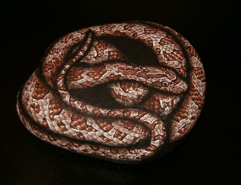 • I sell my art on eBay. You can find me by typing in hand painted snake rock. I have two available on Auction and hope to have another one listed within the next five days or so.